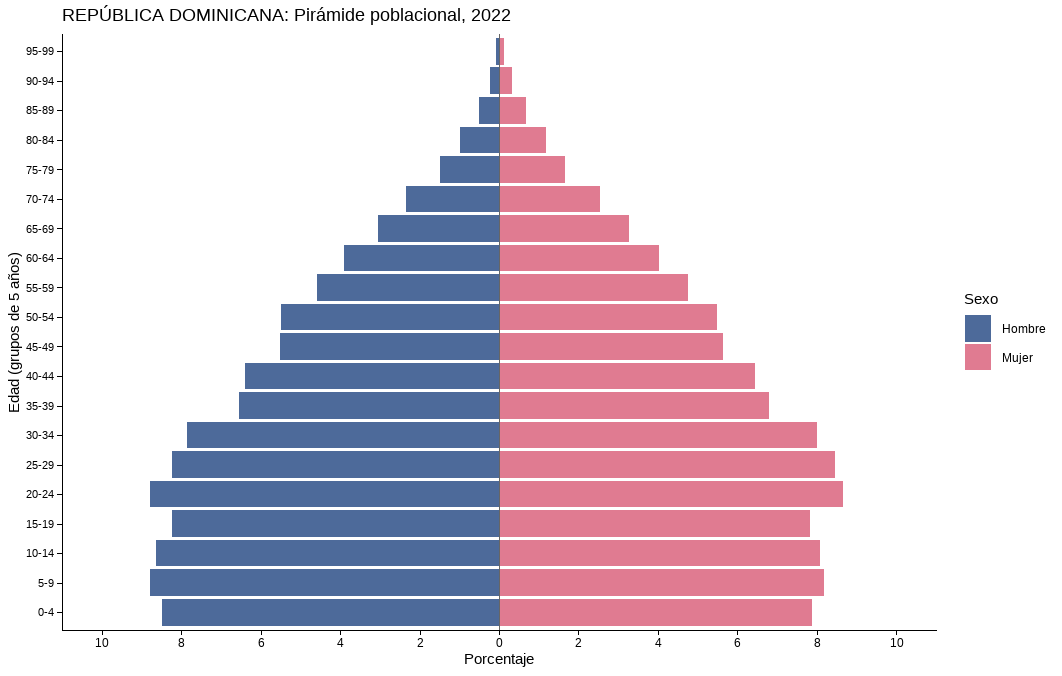 La pirámide poblacional dominicana de 2022 ya no es una pirámide clásica. Su base se estrecha, su centro se ensancha y su cúspide comienza a ganar altura. En otras palabras, el país ha cambiado su forma de nacer, trabajar y envejecer.