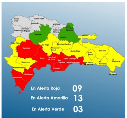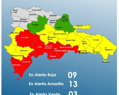 Mientras tanto, en alerta verde permanecen María Trinidad Sánchez, Santiago y Duarte.